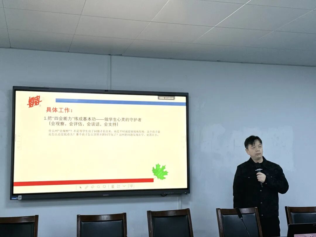 卢登喜副书记重点解读了上级关于推进学生身心健康工作的“新春第一会”精神,并结合学校实际,部署了“强体质、护心理、改评价、聚合力”四大重点任务。他要求,要开齐开足体育课,丰富体育活动,增强学生体质;要构建完善的心理健康教育服务体系;要改革教育评价方式,减轻学生不必要的负担;要凝聚家庭、学校、社会合力,共同营造有利于学生健康成长的环境。