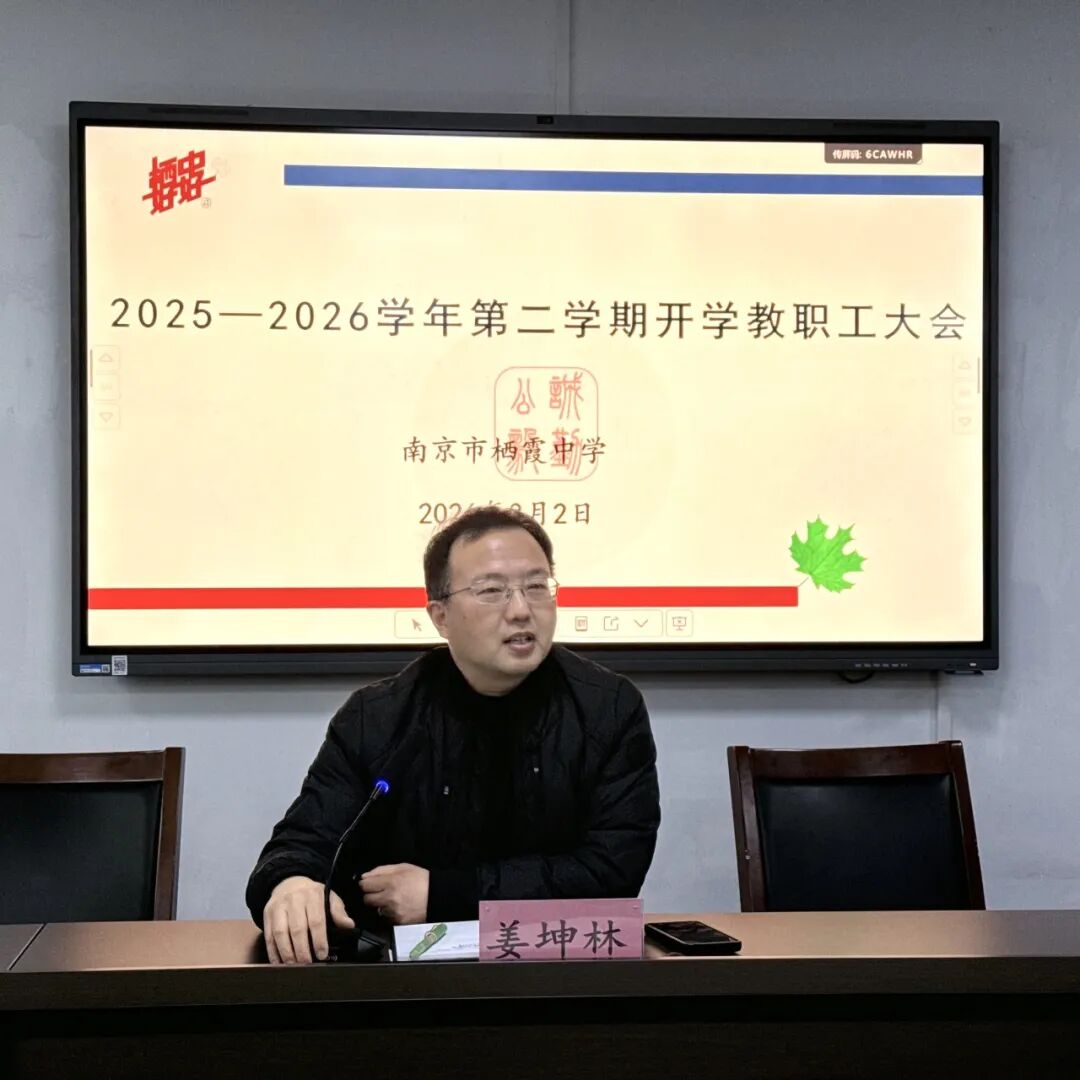 春归万物生,策马新征程。为统筹推进新学期各项工作,明确发展方向,凝聚奋进力量,3月2日,南京市栖霞中学召开2025-2026学年第二学期开学工作部署会。全体校级领导、中层干部及教职员工齐聚一堂,共同擘画学校发展蓝图。会议由校党委姜坤林书记主持,各分管副校长就新学期重点工作进行了详细部署,吴玉珠校长作总结动员,会议内容务实高效,目标明确,为新学期各项工作的高质量开展奠定了坚实基础。